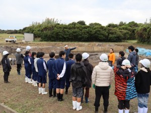 最後に壱岐市の職員の方より発掘調査の最新情報などを現地で説明していただきました。普段では経験できない非常に貴重な発掘体験をさせていただいた関係者の皆様、ありがとうございました。