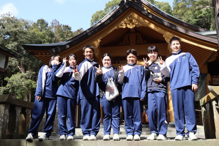 令和8年3月4日(水)東アジア歴史・中国語コースの1年生が歴史学入門の授業で島内巡検を行いました。今回は、勝本町の笹塚古墳、芦辺町の住吉神社、郷ノ浦町の天手長男神社(あめのたながおじんじゃ)。天手長比売神社(あめのたながひめじんじゃ)。車出(くるまで)遺跡。岳ノ辻(たけのつじ)展望台を訪れました。