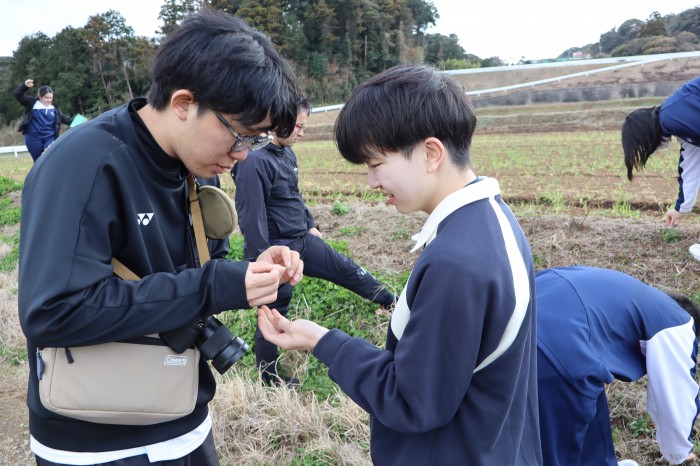 ▲地表調査では「先生!これは弥生土器の欠片ですか?」と目を輝かせていました。