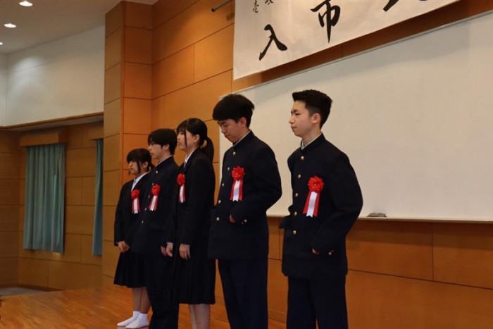 令和8年4月7日(火)入学式に先立って、新入生、保護者等、しま親、教職員による、東アジア歴史・中国語コースの交流会が行われました。昼食をとりながら歓談したことで、初めは緊張していた新入生も、会が終わる頃には安心した笑顔を見せてくれました。その後は本校コモンホールにて令和8年度入市式に出席し、壱岐市の方々から温かい歓迎を受けました。本校からは、離島留学生を代表して中谷泰盛さんが、今後の抱負などを堂々と語ってくれました。