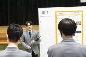 平戸市の文化センターで文理探究発表会を開催しました。1年間取り組んだ探究内容を文理探究科2年性がポスターにまとめて発表しました。今年は、文理探究科1年生の代表班の口頭発表も行いました。長崎総合科学大学の藤原教授をお招きし、最後に指導助言をいただきました。保護者や中学校の先生方など多くの方にも観覧いただきありがとうございました。