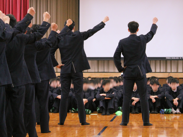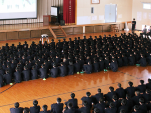 入学式が明けた登校2日目は、対面式と選抜報告会が行われました。体育館に3学年がそろうと、とても迫力がありますね。そして、選抜報告会も行われました。それぞれの部活動生が、日々一生懸命に頑張っている様子が伝わってきました。これからの活躍がますます楽しみですね!