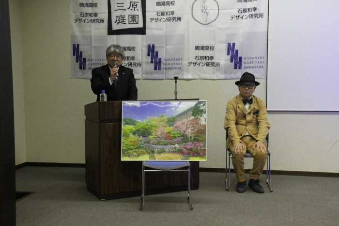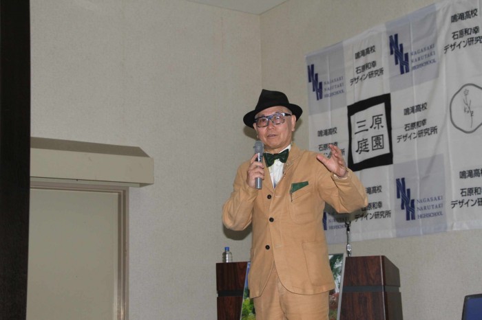 その後、石原氏には講演会を行っていただきました。講演のなかでは、2年前に本校通信制の生徒をイギリスのチェルシーフラワーショーへ帯同したことを話され、今回講演に参加した生徒へも「一緒にイギリスへ行こう」と呼び掛けてくださいました。合わせて、今後も更に本校庭園整備を進めていきたいとおっしゃってくださいました。