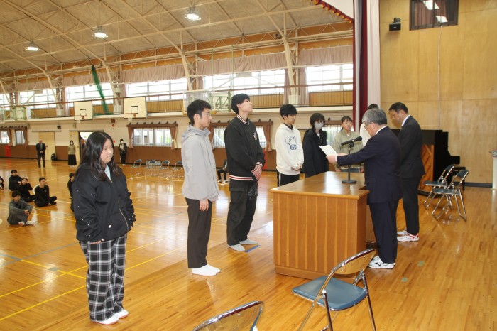 終業式に先立って、令和7年度の皆勤賞・精勤賞の授賞式も行われました。