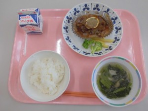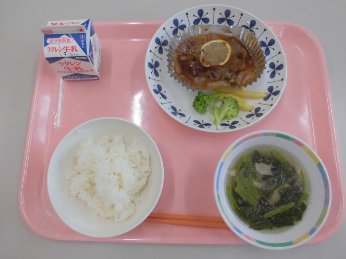 ・ご飯 ・レモンステーキ ・野菜付け合せ ・コンソメスープ ・牛乳 |