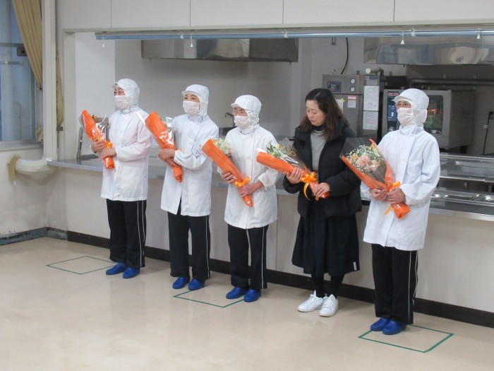 続いて、お世話になった調理師さんたちに、卒業生から花束が贈られました。