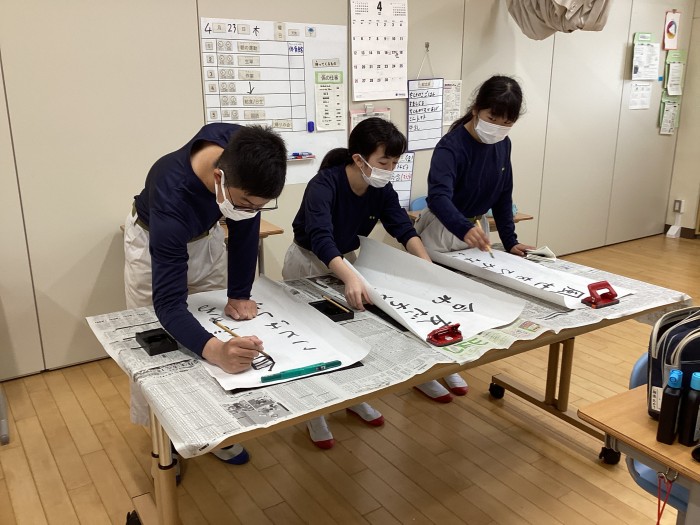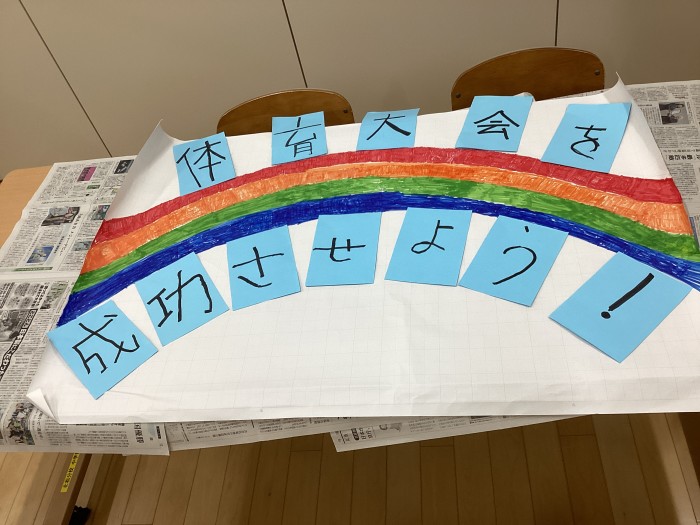 4月26日(日)の体育大会に向けて、中学部の生徒達は、プログラム表や目標、ポスターなどを制作しました。