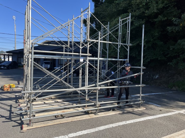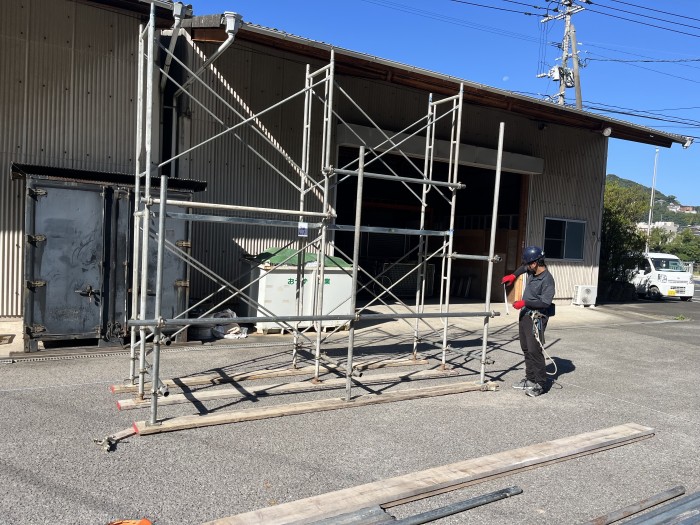 土木測量部では国家資格である技能検定3級足場組立作業を毎年、夏に受験します。