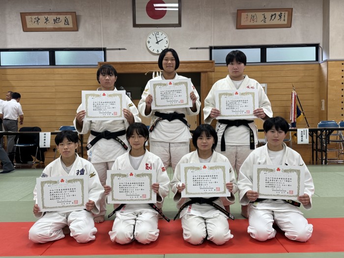 写真提供:県高体連柔道専門部より(写真後方左端が大川葵です)