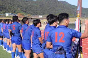 お互いに負けられない息をのむ試合展開は、前半を終えて0-0のまま後半に入ります。緊張する試合展開が続くなか後半15分にフルバック長瀬のキックパスをウイング梁瀬がキャッチしトライ、コンバージョンも決まり7-0とリードします。終了間際にもスタンドオフ村中の執念のトライで追加点を奪い、終わってみれば8年連続24回目の優勝となり、来月27日より東大阪市の近鉄花園ラグビー場で開催される全国大会へ出場することになりました。本校ラグビー部への、多くのみなさまのご声援本当にありがとうございました。