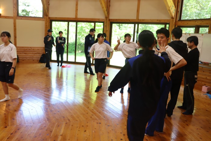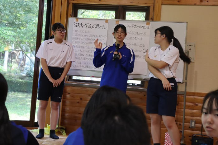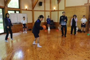 転がしドッヂボールの説明をしています