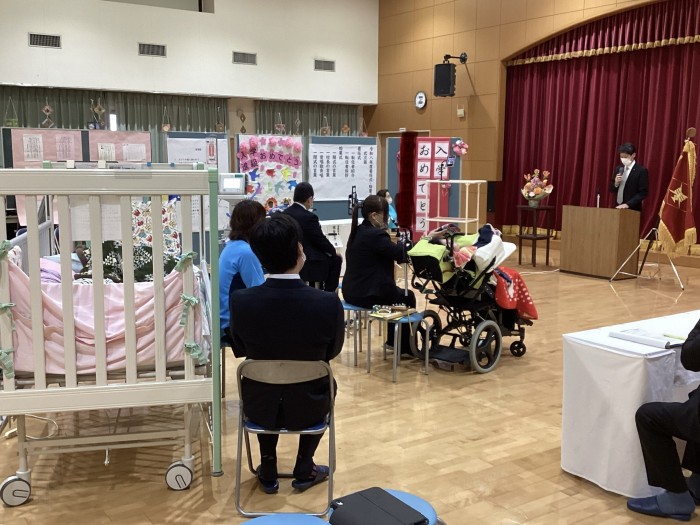 初めて袖を通した制服姿で入場する際は、学校職員、施設職員の皆さん、保護者の方に拍手で迎えられました。