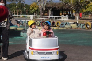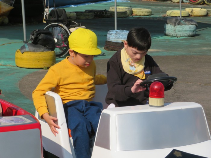 お弁当を食べた後は、友達や先生たちと一緒に乗り物にのって大満足の1日となりました。