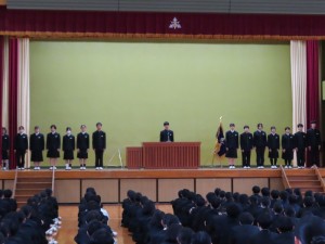 1月19日(月)7時間目に八幡体育館で生徒会引継式が行われました。
