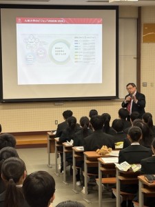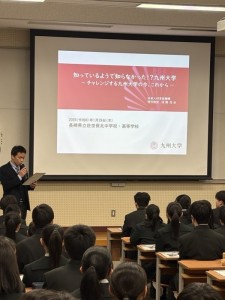 「知ってるようで知らなかった!九州大学! ~チャレンジする九州大学の今、これから~」と題した進路講演会を中学3年生対象に実施しました。