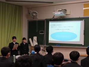 また、3年生は各教室での発表と代表者による全体発表が行われました。