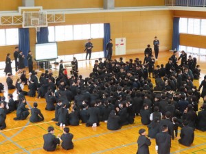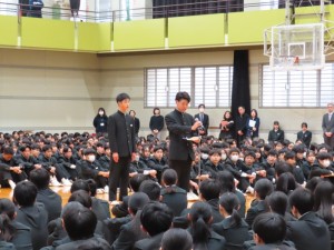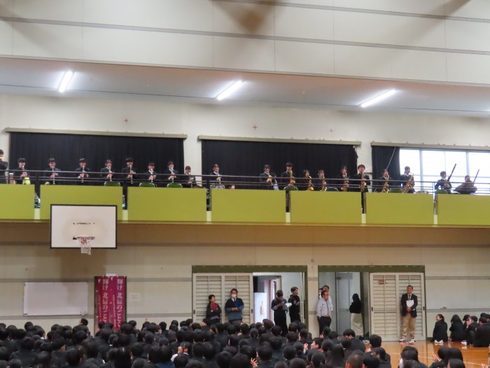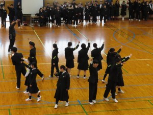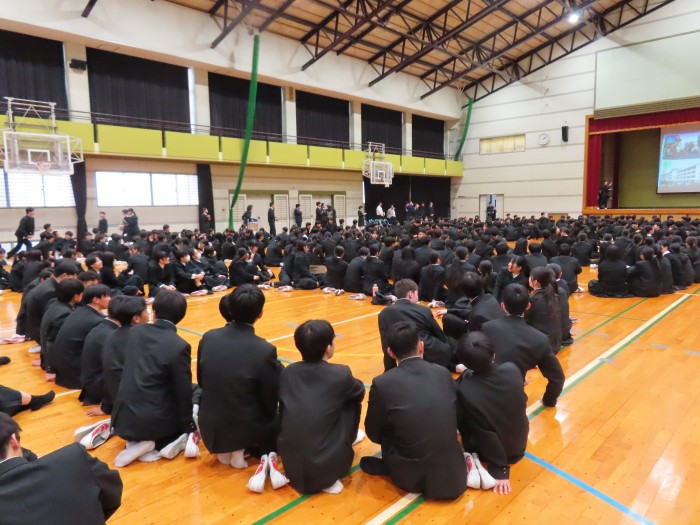 また、その後は八幡体育館で高校生が、新体育館で中学生が歓迎行事を行いました。