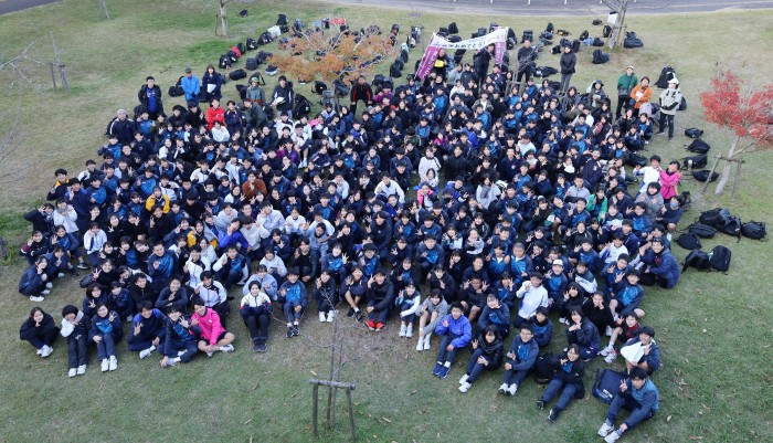 新西海橋公園を目指して24.6kmの距離を縦割りのグループを組んで歩きました。
