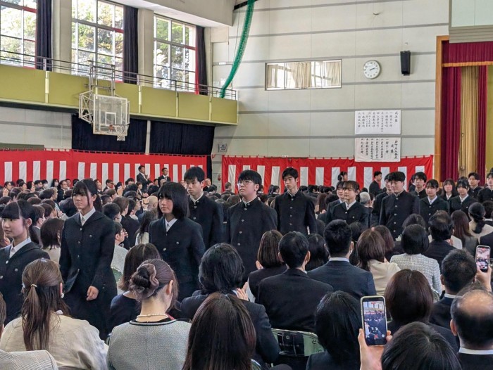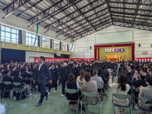 新入生は一人ずつ呼名が行われ堂々と返事をしていました。
