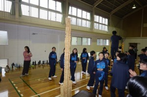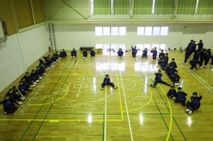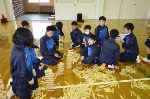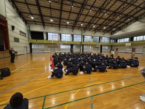 4月10日(金)と13日(月)の2日間、中学1年生は世知原少年自然の家と万徳体育館で野外学習活動に取り組みました。 あいにくの荒天のため、沢登りは行えなかった4月10日は、「KAPLA(カプラ=積み木に取り組みながら、集団づくりや仲間づくりを行う活動)」に取り組むことで、新しい仲間との時間を楽しみました。 万徳体育館で行われた13日の活動は、集団行動及び学級組織等です。「集団の一員として、心と行動をそろえること」「学級という新しい集団の中でそれぞれの役割を見つけ果たそうとすること」などが求められるものでしたが、それぞれが前向きに取り組んでいました。 これから始まる中学校生活の基盤となる大切な行事を、見事にやり遂げることができた新入生でした。