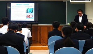 11月14日(金)に歯科講話を実施しました。講師に学校歯科医の小牧憲明先生(こまき歯科医院長)をお招きして、本校での歯と口の健康づくりのための取組につながる講演をしていただきました。生徒たちは、口腔内の環境が全身の健康に影響を与えることや正しい歯の磨き方など、歯と口の健康について多くの知識を得ることができ、自身の日々のブラッシングや食生活について見つめ直す機会となったようです。以下、生徒の感想をまとめたPDFと講演の様子を紹介します。