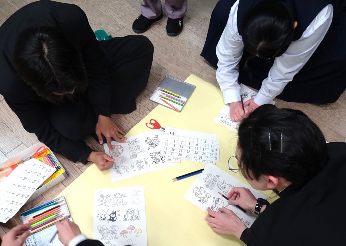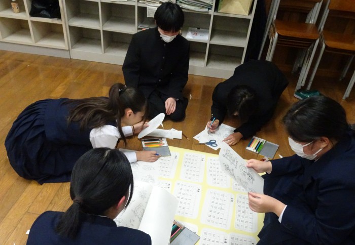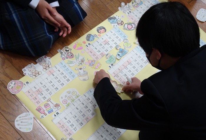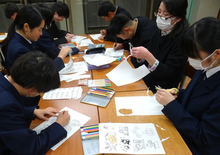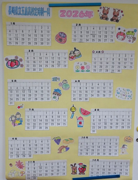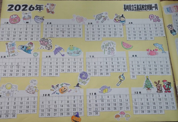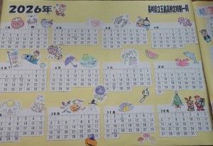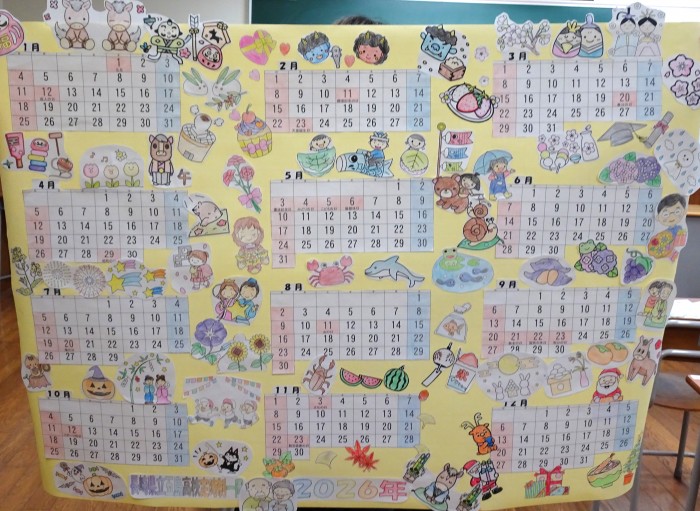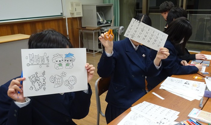 12月5日と10日のLHRの時間を使って、2026年度版のカレンダーを作成しました。着色や切り取り、レイアウトの決定など、グループごとに特色がよく出ている世界に一つだけのカレンダーが完成しました。カレンダーは、後日、地元の2つの介護施設に届けることにしています。