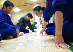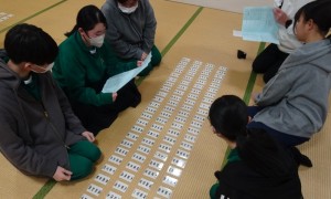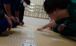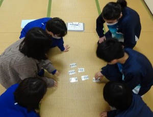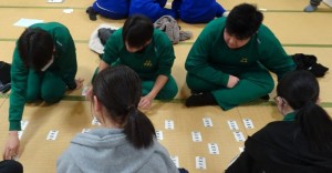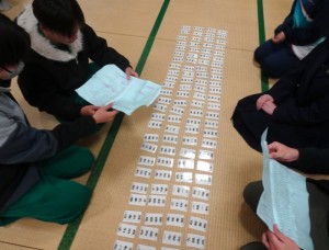 1月15日(木)に、新年の恒例行事となりつつある四字熟語かるた大会を行いました。3人1チーム編成で、各3試合を行い獲得した札数の合計を競います。本場の競技かるたさながらの白熱した対戦ばかりで、一喜一憂しながら大会を楽しんでいました。結果は「4年生Aチーム」が圧倒的な強さで優勝しました。以下、その様子です。