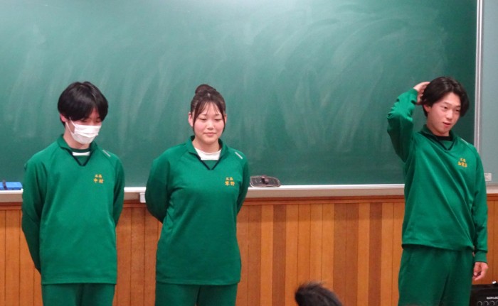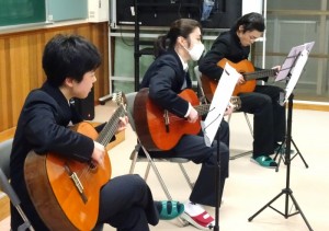 今回、1年生に向けて、各部活動の紹介を実施しました。最後の「ギター同好会」は『怪獣の花唄(Vaundy作詞作曲)』を披露し、会場を盛り上げてくれました。