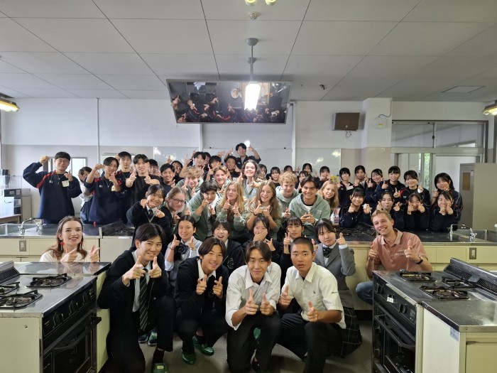 10月31日(金)オランダノールトワイク市から高校生10名と教員3名が来られ、交流活動を行いました。朝の時間で「習字」と「餅つき」の日本文化体験を3年1組の生徒の力を借りて行いました。餅つき活動に関しては材料、準備物、作成手順、味つけ、英語での説明など盛り上げるため試行錯誤を繰り返し、前日にはリハーサルをして臨みました。当日はとてもスムーズに活動でき準備した以上の交流ができました。11月7日(金)には活動すべてが終わりオランダに帰国されました。来年1月には日本からオランダに向けて出発し生徒たちはオランダの街を楽しむことになります。