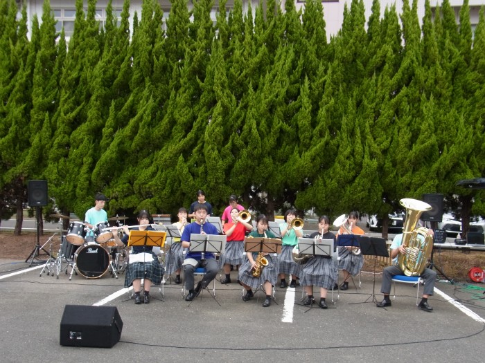 また午後からは施設の外で、青洲会病院の健康祭イベントに参加し、3曲披露する機会をいただきました。1曲目「ノーダウト」、2曲目「どこまでも~how far I'll go~」、3曲目「幾億光年」で盛りあがりました。平戸の海から社会へ向けて羽ばたく若者の力強さを表現してきました。このような機会を与えていただきありがとうございました。また少し猶興館高校吹奏楽部の音が平戸市に響き渡ったようなきがします。