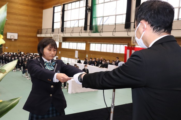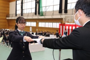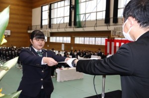 〇皆勤者(無欠席、無遅刻、無早退者)表彰 吉田 夢那さん(3-1)