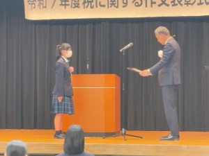 松浦市租税教育推進協議会 会長賞 「税金とこれからの私たちの未来」 山下 葵衣花 さん(1年)