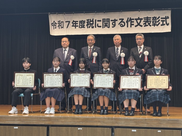 令和7年11月18日(火)。松浦市生涯学習センター(きらきら21)で、令和7年度「税に関する作文」表彰式が行われました。
