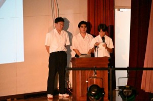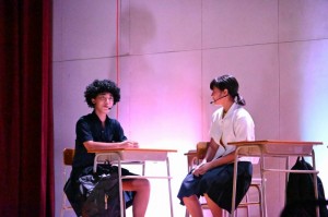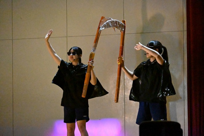 生徒会の劇では、ユーモアとメッセージ性のある演技で観客を魅了しました。