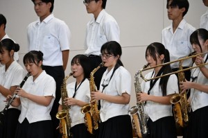 音楽科の生徒による合唱と楽器演奏、コーラス部の美しいハーモニーが体育館に響き渡りました。