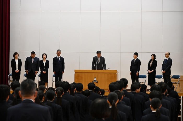 挨拶では、川高生とともに学べることへの期待と喜びが語られ、生徒たちも温かい拍手で新しい出会いを歓迎しました。
