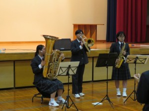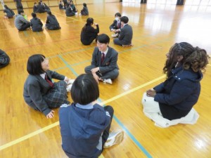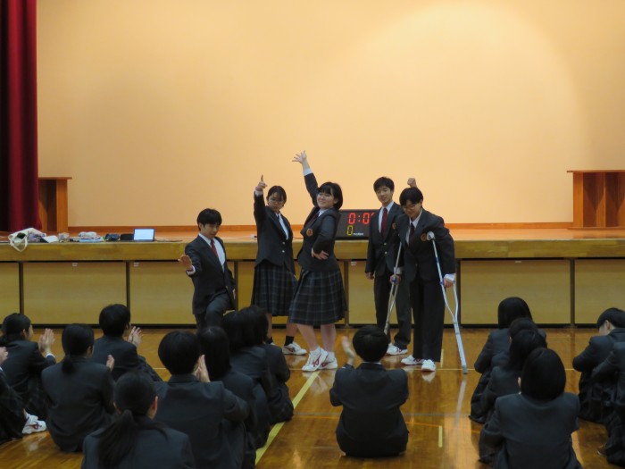 生徒会による年間行事の紹介や新転任の先生の紹介、全生徒と教員でアイスブレイク、部活動紹介を行いました。
