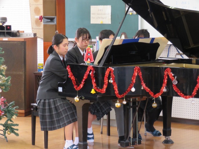 合唱やピアノソロ、創作曲の演奏などを披露しました。