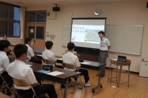 本校1年生が学校紹介をした後、本校職員による入学者選抜についての説明がありました。