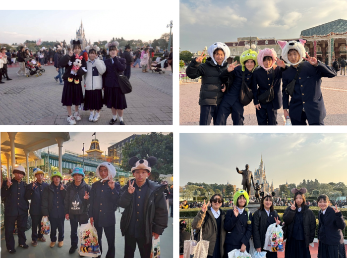 ディズニーランドでは全員が耳や帽子をつけ、本当に楽しそうに過ごしていました。弾ける笑顔、という表現がぴったりな時間だったと感じています。