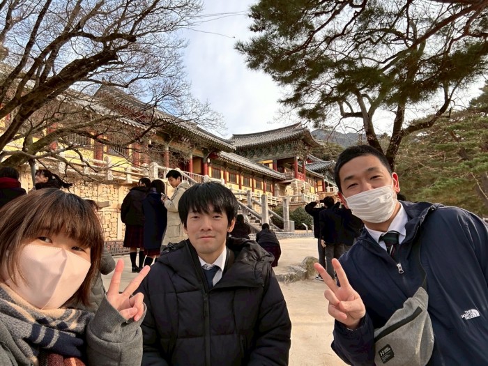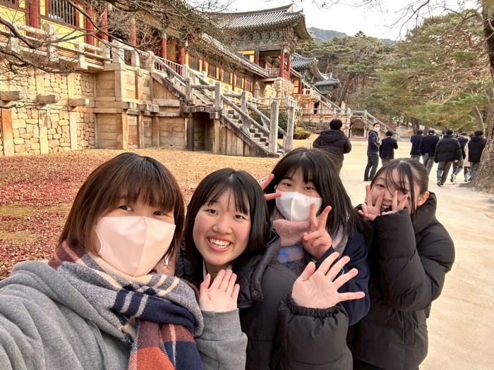 修学旅行2日目は、仏国寺(世界遺産)・天馬塚を見学した後、釜山に戻り、現地の高校との交流会に参加しました。
