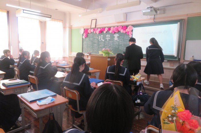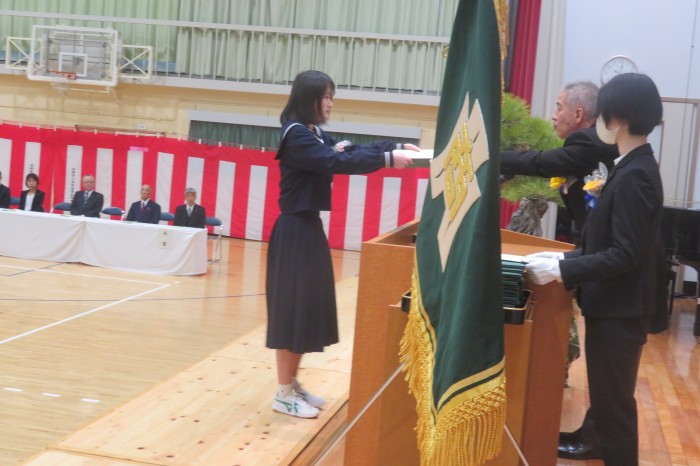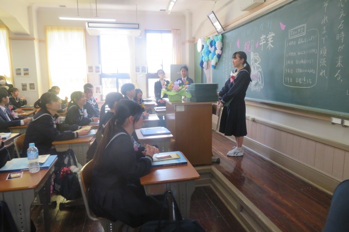 卒業生代表の菊池結菜さんによる答辞では、3年間の思い出とともに、家族や教職員、