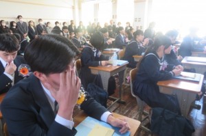 校長式辞では、音楽グループ「ゆず」の「栄光の架橋」の歌詞を紹介しながら、