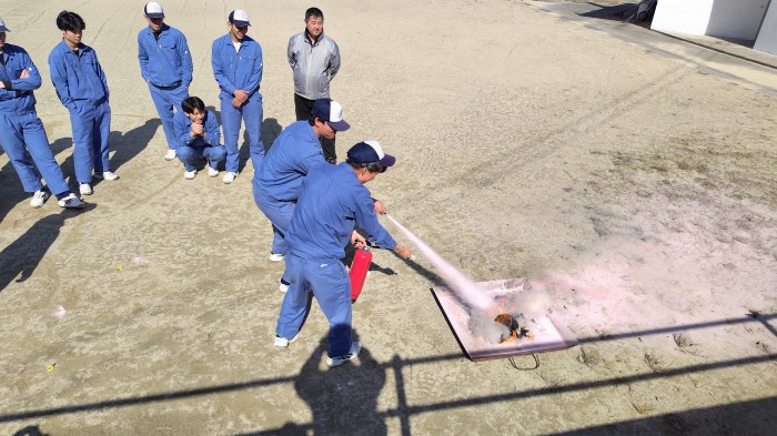 得るために消火講習を行ないました。これまで、海友丸や授業で講習を数時間受けて