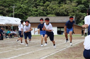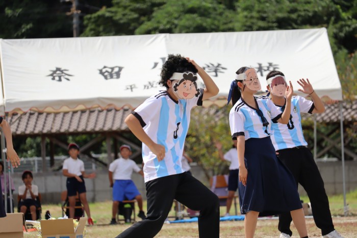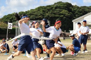 かわいい保育園児によるお遊戯、幼児競争、地域の方々による地区別玉入れ、輪っか回しリレー、そしてみんなで踊る奈留町音頭がありました。
