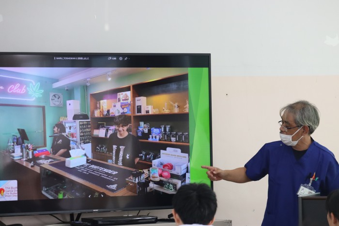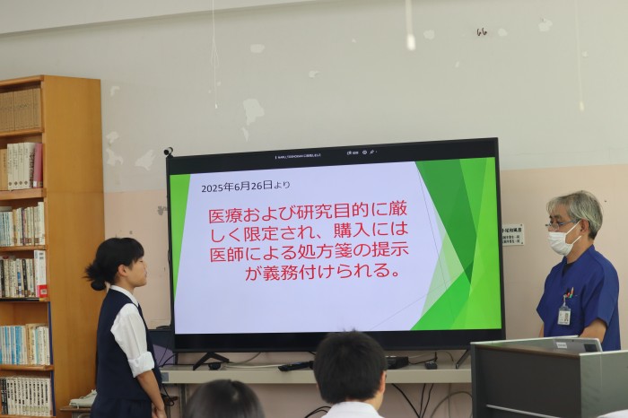 10月23日(木)に奈留薬局の山本先生をお招きして、薬物乱用防止講話を実施しました。今回は、違法薬物の恐ろしさを詳しく知ることができました。また、山本先生のタイでの話など、生徒が興味を引くような話で真剣に楽しく学ぶことができました。生徒一人ひとりが正しい知識を身に付ける貴重な時間となりました。山本先生、ありがとうございました。