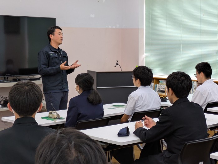 11月13日(木)に五島警察署交通課長の佐々様をお招きして、全校生徒を対象に「交通講話」を実施しました。今年度は、自転車とイヤホンをテーマに話をしていただきました。自転車に乗る前の合言葉「ぶたはしゃべる」を教えて頂きました。これは、自転車の点検箇所の頭文字です。また、後半には高校生に多い、イヤホン使用の危険性について実践を交えて教えていただきました。イヤホンで両耳がふさがった状態で、背後から自転車が来た時の危険性を確認することができました。今後、事故に合わないために、自分の身は自分で守ることを再認識できました。