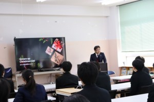 終業式の校長訓話では、"My Grown-up Christmas List" という曲が紹介され、自分のことばかりではなく周囲の人や世界の人々にも目を向けてみんなの幸せを祈るということについてのお話がありました。この曲は、生徒や職員は聞いたことがある人が少なかったのですが、ALTのソフィー先生はよく知っていて有名なクリスマスソングなのだそうです。