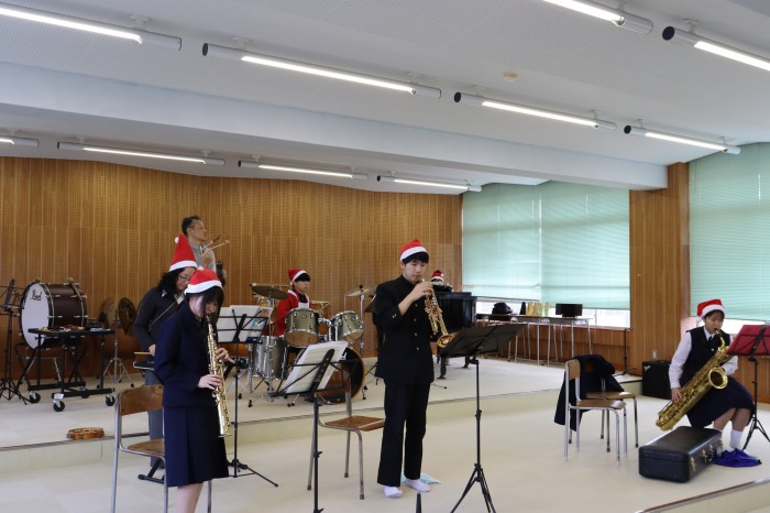 終業式のあとには吹奏楽部のプチ演奏会もあり、多忙な受験生も、ひとときのクリスマス気分を味わいました。