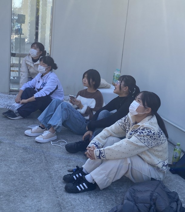 生徒たちは主に組み立てたツリーに飾りをつけたりイルミネーションを固定する作業をしましたが、やってみると、思っていたよりも時間と手間がかかる作業で、午前中には終わらず、DON DON 奈留の皆さんが炊き出しをしてくれたカレーとうどん(両方でした!)をいただいて午後も作業をしました。